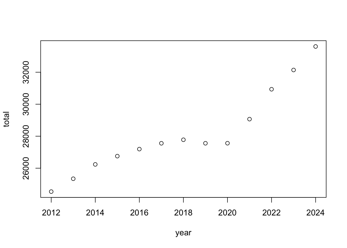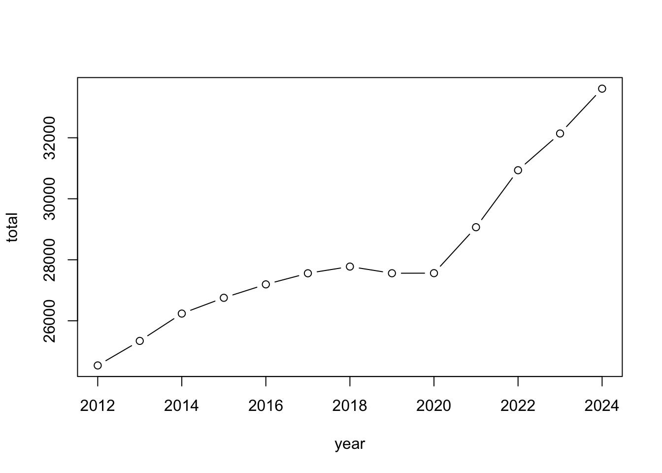 year = c(2012, 2013, 2014, 2015, 2016, 2017, 2018, 2019, 2020, 2021, 2022, 2023, 2024),