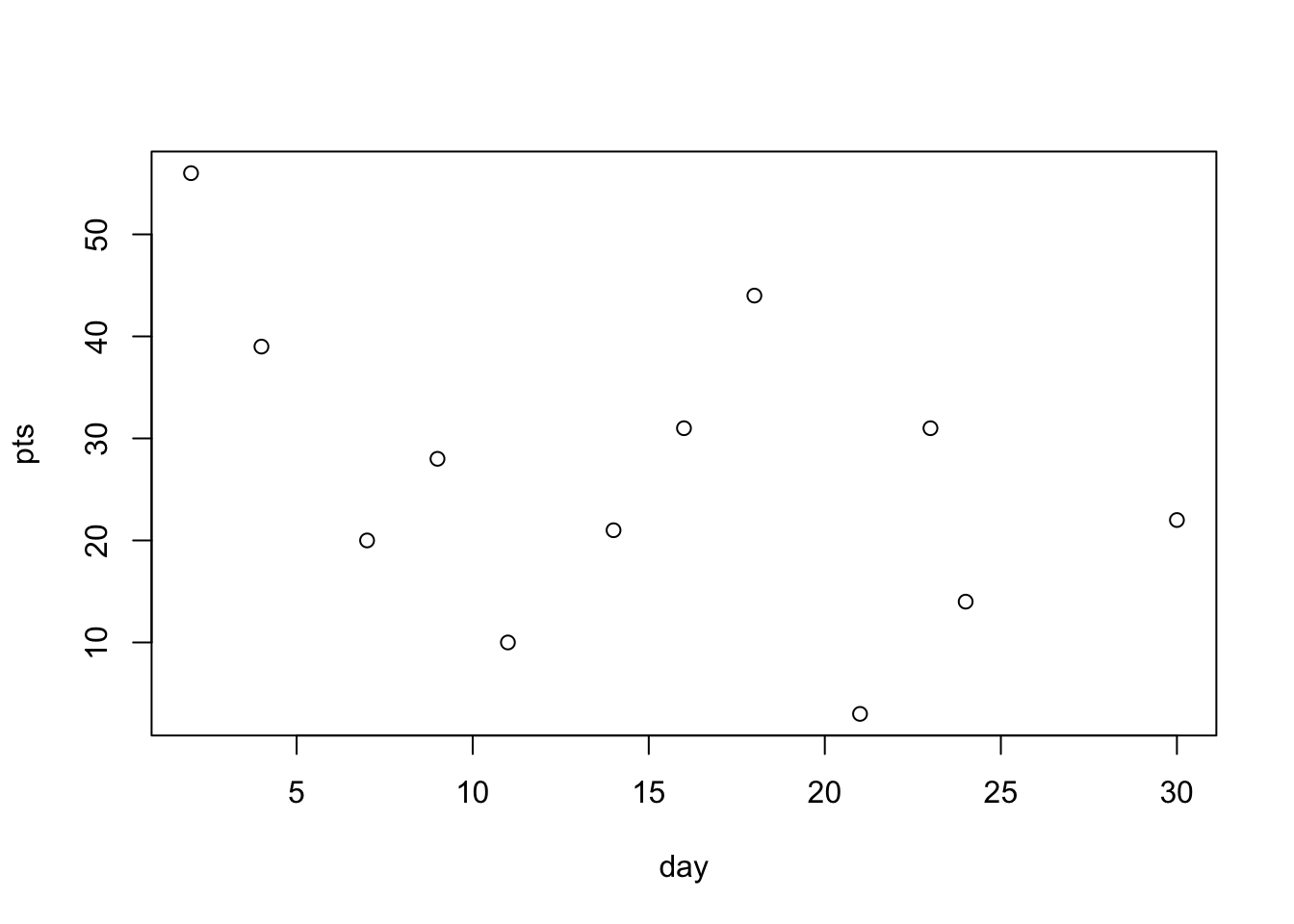 pts = c(10, 39, 31, 56, 20, 31, 28, 3, 14, 21, 44, 22),